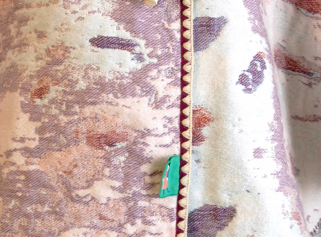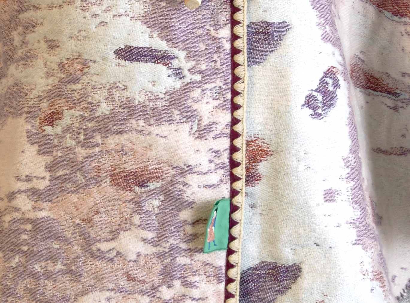 Aiyana | medium: Blanket/Warntu – Textile Art | Techniques: Jacquard weaving & embroidery | materials: cotton, mohair wool & cotton fabric with wool yarn | Size: 160 x 190 cm | Production date: 2009
