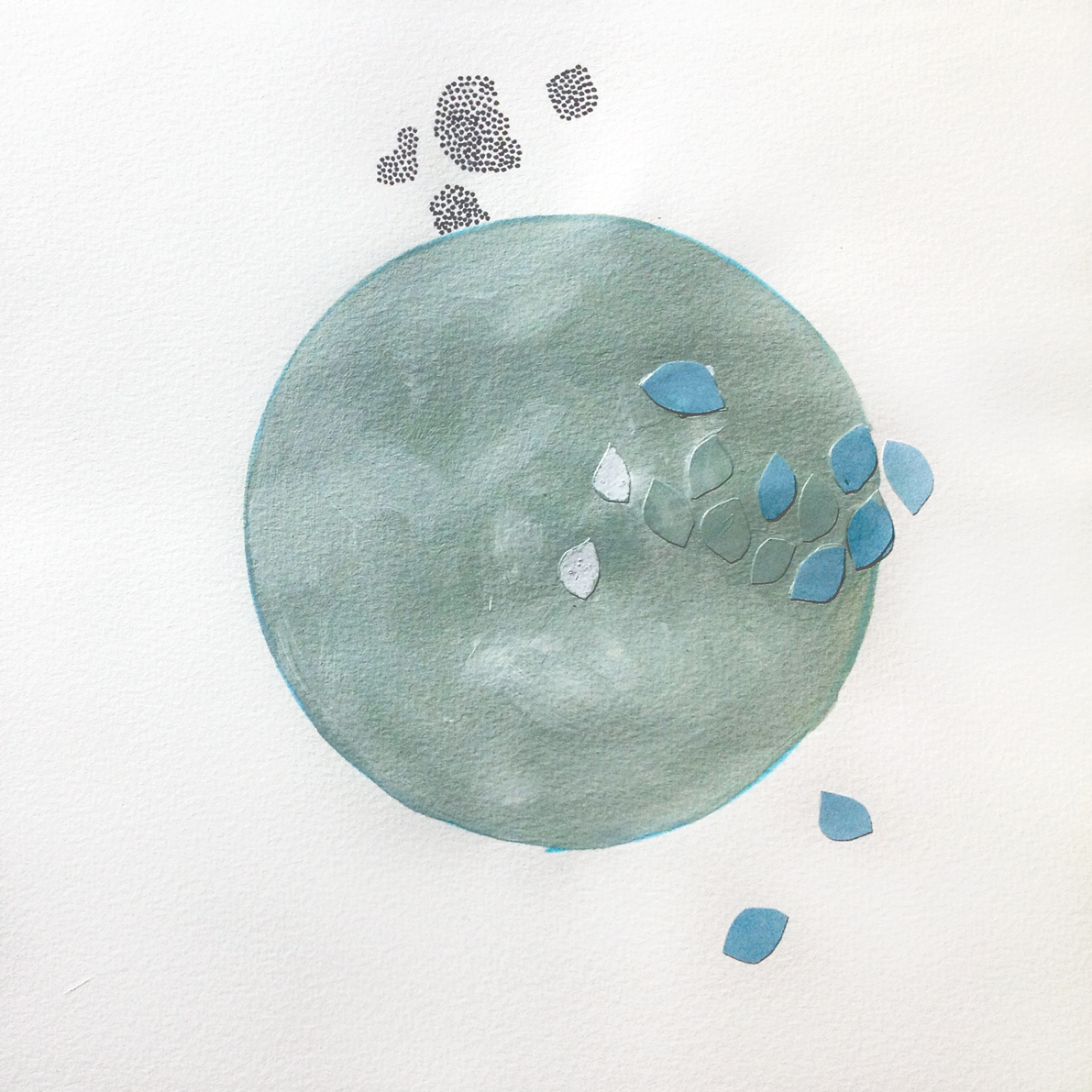 pen, acrylic paint and paper cut on paper