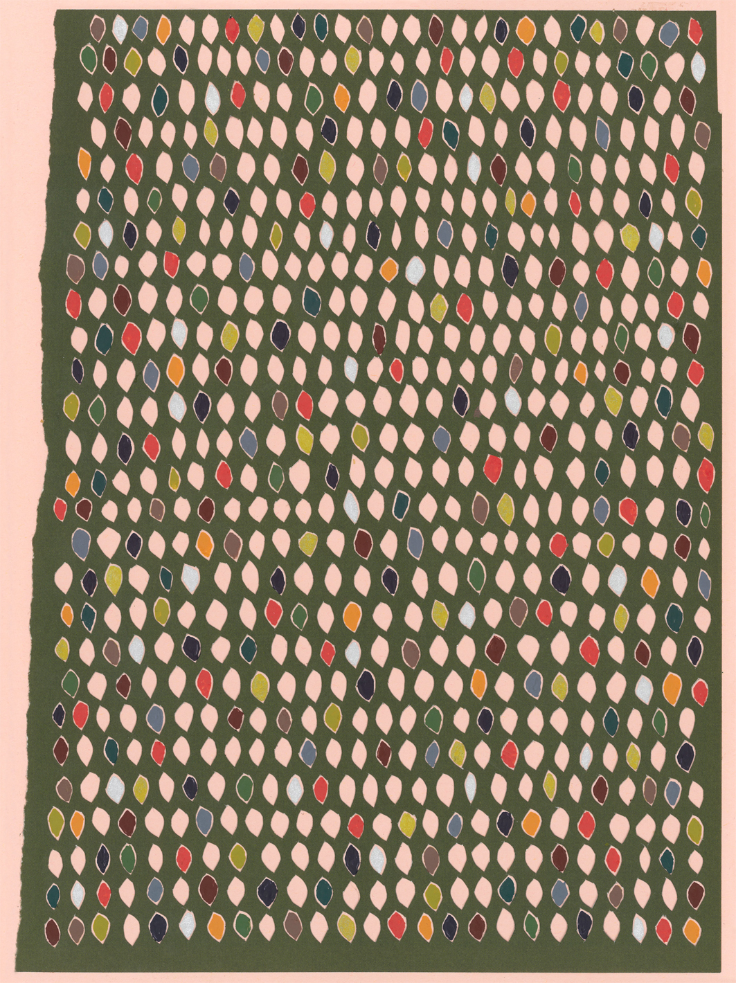 acrylic paint, gold and silver pen and paper cut on paper