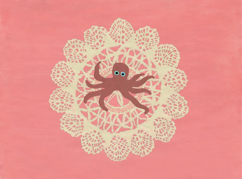 Embracing You With Many Arms | medium: mixed media painting | materials: acrylic paint and paper cut on paper | size: 34 x 25 cm | production date: January 2014