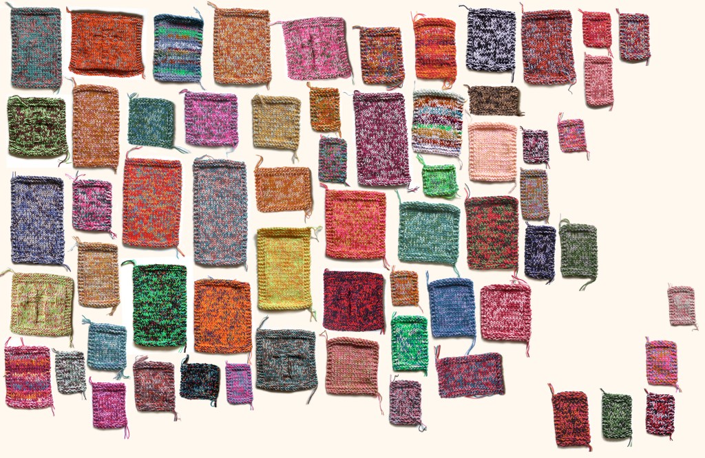 Schilderij ‘n Brei | medium: installation art – part of installation | techniques: knitting | materials: discarded leftover acrylic yarn | production date: 2004 – 2005