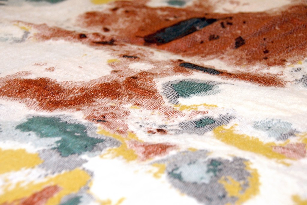 And there a journey of conscious transformation started, with a blanket of mould. Mould reminding us that where one thing ends, another is being born. That all we see is transience, in transformation. In 2002 I took a picture of some milk gone mouldy in a glass and turned the inspiration into a jacquard woven blanket in 2007. Then in 2010 I made the mixed media drawing (see above) and from there (a) Leftover Universe was born.