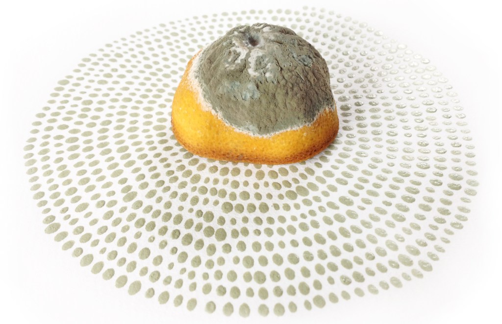 Going To The Mountain | mixed media installation | techniques & materials: found object (half of a dried mouldy lemon) & painting on paper | size: 20 x 20 x 7 cm | production date: 2013