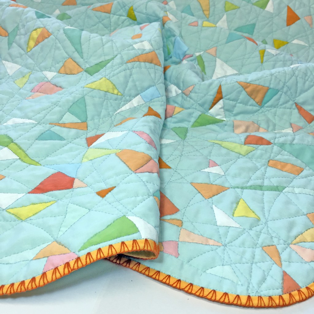 Rlung Rta (Tibetan Prayer Flags) | medium: textile art & design – quilt | techniques: hand quilting, hand painting, embroidery & stitching | materials: eco friendly textile ink, discarded leftover fabric, cotton thread, wool yarn & eucalypt fibre filling | size: 80 X 80 cm | production date: 2016