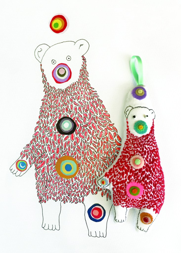 wool & cotton thread, merino wool felt on leftover cotton fabric with Eucalyptus fiber filling