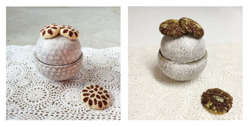 One of my childhood dreams was to become a pâtissière, I thought it would be so much fun to make sweets, cookies and cakies every day! 😊 These little spherical jars, for keeping or serving sweets (or jewellery or something else of course), are dedicated to that childhood dream.