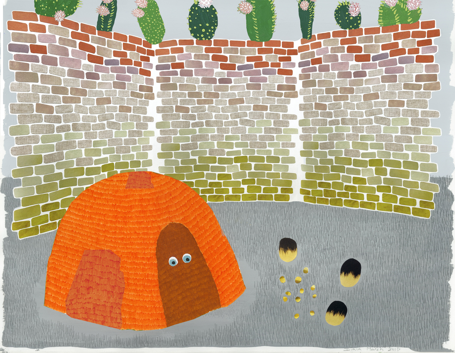 Stuck Behind A Wall | pen, paint and paper cut on paper | 30 x 39 cm | March 2018